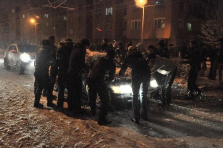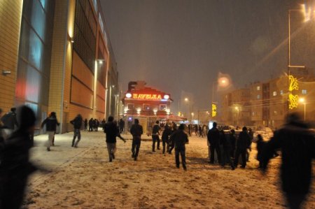 Öğrenciler, tramvay ve diğer araçları kartopu yağmuruna tuttu. Tramvay seferlerinin kısa süreli durduğu gözlendi. Çekim yapan basın mensupları da kartoplarının hedefi oldu. Bu sırada taşkınlık yapan bazı gençleri polis uyararak bölgeden uzaklaştırdı. Grup, bir süre daha karşılıklı kartopu oynadıktan sonra olaysız bir şekilde dağıldı. CİHAN