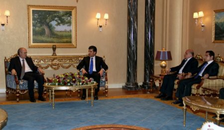 Dışişleri Bakanlığı Müsteşarı Feridun Sinirlioğlu (solda), Irak Kürdistan Demokrat Partisi Başkan Yardımcısı Neçirvan Barzani (Sinirlioğlu'nun sağında) ile görüştü. CİHAN