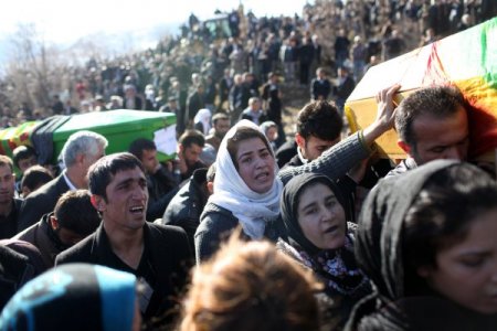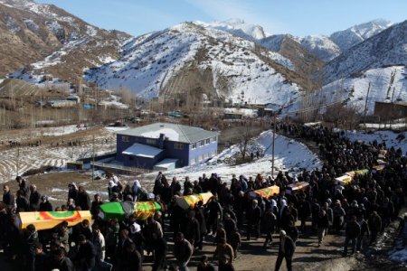 Şırnak ın Uludere ilçesi kırsalındaki bombardımanda hayatını kaybeden 35 kişinin cenazeleri kılınan namazın ardında konvoy halinde ortasu köyü mezarlığına götürüldü. 30 aralık 2011 CİHAN