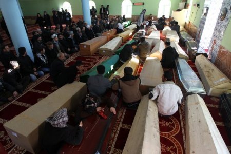savaş uçaklarının terörist zannederek düzenlediği saldırıda hayatını kaybeden 36 vatandaşın cenazesi şırnak uludere deki yeşil ova camii ne getirildi. cenazelerin yakınları tabut başında yas tuttu. CİHAN