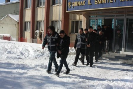 Şırnak merkez, bazı ilçe ve beldelerde yapılan eş zamanlı operasyon kapsamında biri albay rütbesinde muvazzaf asker, dokuzu sivil toplam 10 şüpheli şahıs tutuklandı.