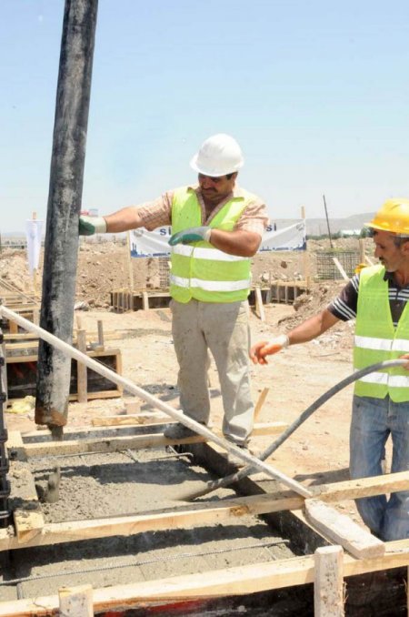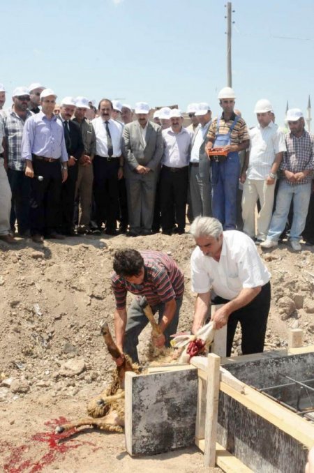 Konuşmaların ardından dualar eşliğinde kurban kesilerek Belediye Başkanı Doğan Ürgüp, SESOB Başkanı Beşir Köksal ve diğer katılımcılar tarafından butona basılarak temele ilk beton döküldü.