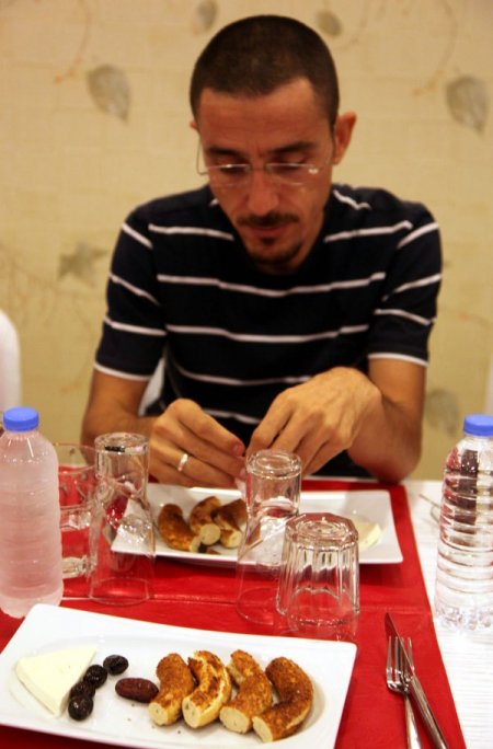 Kütahya'nın Tavşanlı ilçesinde, yerel bir gazetenin düzenlediği iftar yemeğine katılanlar, Afrika'da yaşanan açlık dramına dikkat çekmek amacıyla simit, peynir ve zeytin yedi.