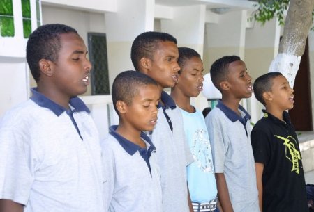 Somalili öğrenciler daha sonra okullarına gelen Türk işadamlarına müzik ziyafeti sundu. Öğrenciler, önce işadamlarının da katılımıyla İstiklal Marşı'nı seslendirdi. Ardından Somali Milli Marşını da okuyan öğrenciler türkü ve ilahiler söyledi.
