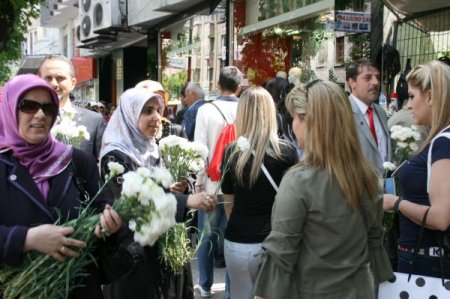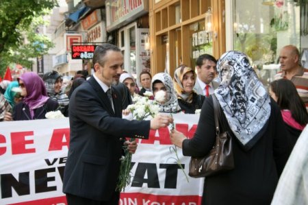 Saadet Partisi (SP) Bursaİl Kadın Kolları tarafından düzenlenen ‘Sevgi yürüyüşü’nde vatandaşlara karanfil dağıtıldı.
