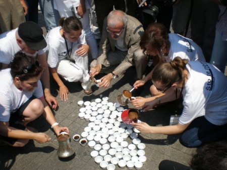 Birleşmiş Milletler (BM) gözetimindeki Srebrenitsa'da 1995 yılında 8 bini aşkın insanın topluca öldürülmesinin yıl dönümü sebebiyle Taksim’de kahve fincanları ile anma töreni düzenlendi. Meydana stant kuran bir grup Boşnak öğrenci, Bosna usulü kulpsuz kahve fincanlarının içini doldurarak yere koyduktan sonra bir araya topladı. Anma törenine katılan sanatçı Haluk Levent öğrencilere destek verdi.