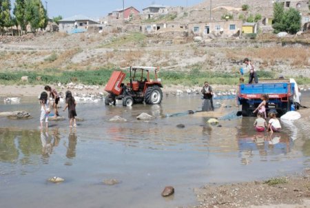 İlçeye bağlı Hoşgeldi ve Bingöldek köylerinde su olmadığı için çiftçiler buğdaylarını Alparslan 1 Baraj Gölü kıyısında yıkamaya başladılar.