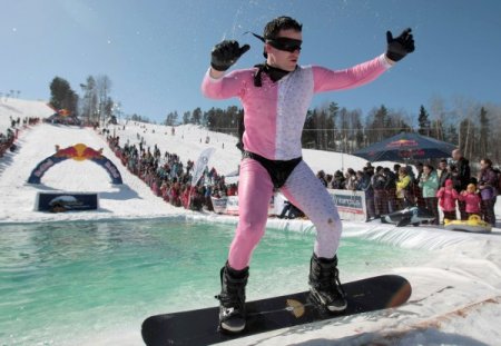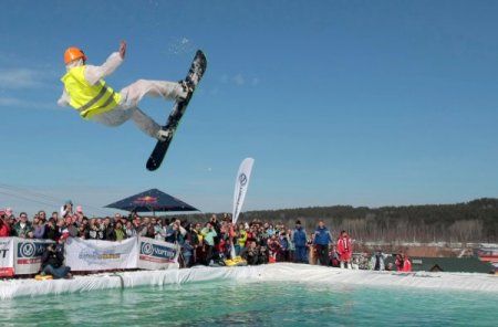 'Snejniy' tatil köyünde düzenlenen programda ona yakın çizgi filmi kahramanı buzlu havada pistten havuza zıplama yarışına katıldı. Yarışmada SpongeBob, Süperman, Avatar, Buz Devri'nden sincap, Futurama'dan Bander robotu gibi çizgi film kahramanları yer aldı. Karlı pist üzerinden kayak ve snowboard ile kayan kahramanlar, bir bir havuza atladı. En güzel atlayışı vatandaşlar alkışlarla desteklerken, juri en başarılı kahramana yüksek notlar verdi.
