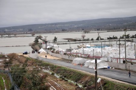 Yağışların başladığı ilk günlerde Nehre ve nehre bağlı kanallara yakın bir alana kurulan Boynuyoğun çadır kente taşkın suları yaklaşmıştı. Son yağan yağışlarla birlikte artan su seviyesi nedeniyle çadır kentin güvenliğini sağlayan Jandarma’nın konuşlandırıldığı çadırlar ve misafir Suriyelilere hizmet veren Sahra Hastanesi su altında kaldı.