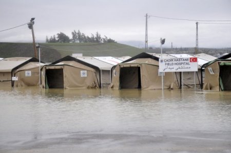 Taşkın nedeniyle su altında kalan çadırlar hemen boşaltılırken hizmetlerin aksamaması için sahra hastanesinin kuruluş çalışmasının devam ettiği halen Çadır kentte kalan Suriyeliler için 1 ambulans ve Sağlık Ekiplerinin Çadır Kent içinde bekletildiği görüldü.