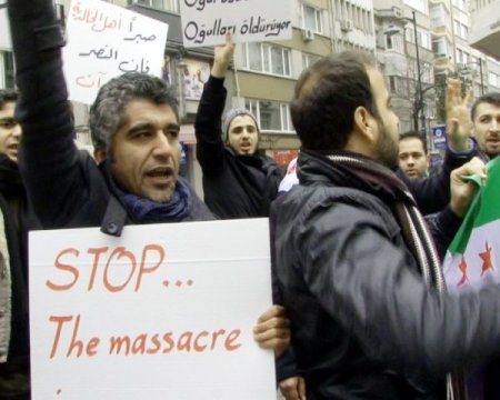 Suriye'nin Humus kentinde gece yaklaşık 500 sivilin öldürüldüğünü söyleyen Türkiye'deki Suriyeliler, eylem yaptı. Suriye Konsolosluğu önünde toplanan muhalifler, Beşşar Esed yönetiminin ülkeyi terk etmesini istedi.