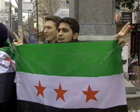 Beşşar Esed yönetiminin Suriye’den ayrılması için protesto gösterisi yapan yaklaşık 20 kişilik grup 'Katil Esed Suriye’den defol' sloganları attı. Türkçe ve Arapça pankartlar açan göstericiler, Türkiye’de bulunan Esed yönetimi temsilcilerinin gönderilmesini istedi.