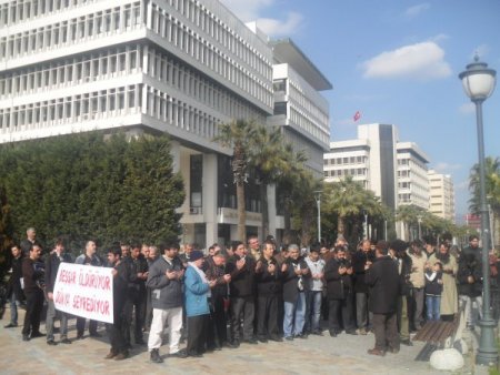 Suriye’de Esed rejiminin halka yönelik gerçekleştirdiği kanlı saldırılar, İzmir Sivil Toplum Kuruluşları Platformu (İSTOK) tarafından Konak Meydanı'nda protesto edildi. Hayatını kaybeden Müslüman Suriyeliler için gıyabi cenaze namazı kılındı, dualar edildi. ‘Beşşar öldürüyor, dünya seyrediyor’, ‘Katil Beşşar Esed, sonun Mübarek olsun’ yazılı pankart ve dövizler taşıyan grup, sloganlarla Esed yönetimini protesto etti.
