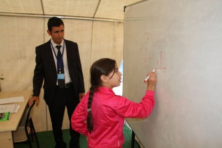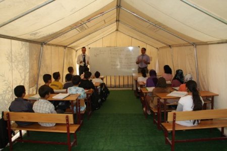 Çatışmalardan kaçarak Türkiye’ye sığınan Suriyelilerin çocuklarına çadır kentlerde kurulan sınıflarda eğitim veriliyor.