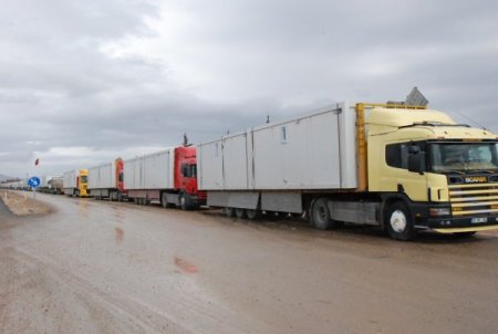 Kilis Öncüpınar Sınır Kapısı’nda Suriyeli mülteciler için hazırlanan konteyner kent çalışmalarında son aşamalara gelindi. Şuana kadar 2 bin civarında konteyner alana yerleştirilirken, 61 tanesi de TIR’ların üzerinde bekliyor. ‘Yaşam konteyneri’ adı verilen 21 metrekarelik alanda oluşturulan kapalı bölmelerin eksi 50 dereceye kadar dayanıklı olduğu ve 5 kişilik bir ailenin yaz-kış oturabileceği şekilde dizayn edildiği belirtildi.