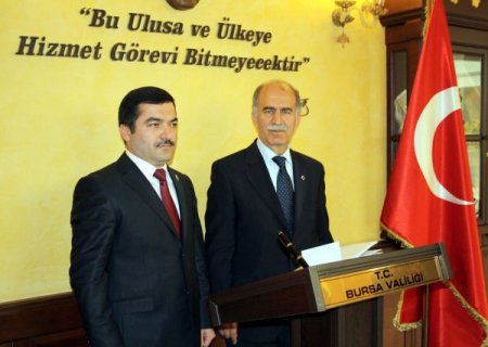 Tacikistan Cumhuriyeti Ankara Büyükelçisi Farruh Şaripov, Bursa Valisi Şahabettin Harput’u ziyaret etti. Büyükelçi Şaripov, Bursalı işadamlarını ülkesine yatırım yapmaya davet etti. Heykel Valilik Binası'nda gerçekleşen ziyarete Büyükelçi Yardımcısı Bahtovar Ahmedov, Başkatip Konsolos Habibulo İsmailov, TUSKON Avrasya Koordinatörü Dr. Coşkun Erten, BUGİAD Başkan Vekili Ali Fuat Er katıldı. Vali Harput, Tacikistan ile Türkiye arasında çok yakın ve sıcak ilişkiler olduğunu belirtti. Tacikistan’da çok sayıda Türk girişimcisinin faaliyet gösterdiğini ifade eden Vali Harput, "Sayın Büyükelçinin bu ziyareti ile ilişkilerimizin daha da gelişeceğini düşünüyorum." dedi. Tacikistan Büyükelçisi Şaripov ise iki ülke halkının kardeş olduğunu dile getirdi. Hz Mevlana’nın 'Kalplerin bir olması, dillerin bir olmasından daha üstündür' şeklindeki sözünü hatırlatan Büyükelçi Şaripov, iki halkın hem sima olarak hem de fikir ve düşünce olarak birbirine çok benzediğine dikkat çekti. Büyükelçi Şaripov, şunları ifade etti: "Tacikistan Cumhuriyeti su kaynakları ve maden ocakları bakımından çok zengin bir ülkedir. Tacikistan Cumhuriyeti orta Asya’da su kaynakları açısından birinci sıradadır, dünyada ise sekizincidir. Şuanda suyla ilgili 150 tane hidroelektrik santrali projesi var. Tarım sektörü de aynı şekilde çok iyi potansiyele sahip. Sanayi sektöründe gelişen bir sektör. Çimento ve mermer üretimi artıyor. Türkiye'nin tarih ve kültür kenti Bursa'dan işadamlarını sizin başkanlığınızda ülkemize davet ediyoruz." Konuşmaların ardından Bursa Valisi Harput, konuğuna İznik Çinisiyle işli bir gümüş hediye ederken, Büyükelçi Şaripov da Tacikistan’ın el işi ürünlerinden ‘Hundal’ adı verilen bir tablo takdim etti. CİHAN
