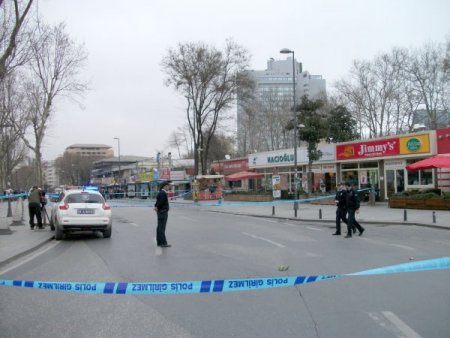 Taksim meydanında bir restoran önüne bırakılan poşet içerisindeki kutu polisi bomba alarmına geçirdi. Taksim meydanına çıkan caddeyi kapatarak vatandaşları uzaklaştıran polis, bomba imha ekiplerinin gelmesini bekliyor.