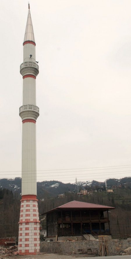 Rize'nin Kalkandere ilçesi Hüseyin Hoca Köyü'nde 34 yıl önce Trabzon'un Of ilçesinden getirilerek çay alım merkezinin üzerine monte edilen 186 yıllık tarihi ahşap cami, 9 ay önce vinç yardımıyla kaldırılarak yeni yerine taşındı. Bir süre sonrada çay alım merkezi de yıkılınca taşınan caminin 45 metrelik minaresi ortada kaldı. Köylüler şimdi minareyi ne yapacaklarını düşünmeye başladı.