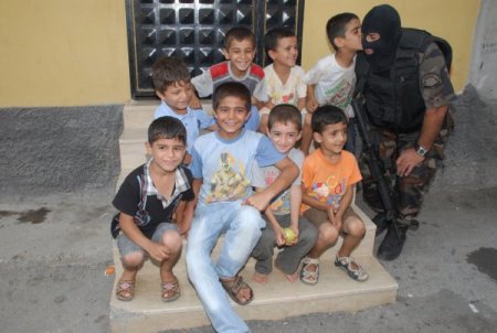 Adana’da bir ev ve markete eroin baskını sırasında görev alan özel harekat polislerinin Güneydoğulu ailelerin yaşadığı mahallede çocuklarla diyalogları dikkat çekti. Özel harekatçılar, genellikle “taş atma” olaylarıyla gündemde olan Dağlıoğlu mahallesinde çocuklarla “çak” yaptı. Onlarla ikili diyaloğa girdi, çocuklar da yüzü maskeli bir özel harekat polisini öptü.