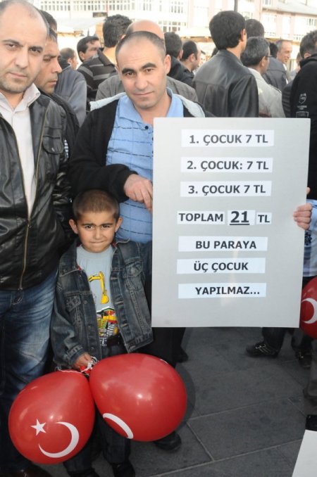 Sivas Kamu Şirket İşçileri Derneği (KAŞİD) üyeleri, Cumhuriyet Meydanı’nda toplanarak, taşıdıkları pankartlarla yaşadıkları ekonomik sıkıntıları dile getirerek, Başbakan Recep Tayyip Erdoğan’dan yardım istedi.