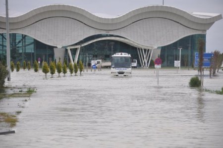 Hatay Valiliği havaalanının pist yüzeyinde ve apronda su seviyesini 3 metre olarak açıkladı. Dün sabah saatlerinde Hatay Havaalanı terminal binasının ön kısmı taşkın sulardan etkilenmezden gece yağan yağmurun ardından terminal binasının zemini tamamen su altında kaldı.