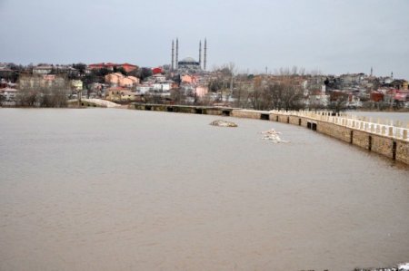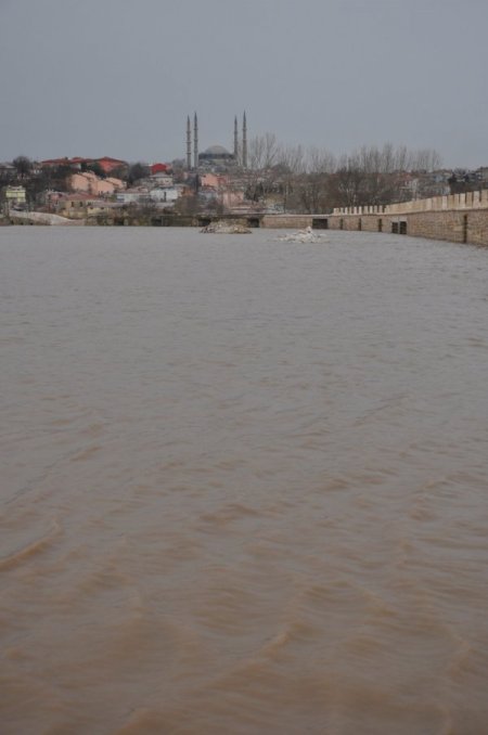 Meriç ve Tunca nehirlerinde su yükselişi devam ediyor. Taşkın suyu, Edirne ile Karaağaç Mahallesi arasında, karayolu bağlantısının yapıldığı Tunca Köprüsü'nün giriş ayağı su almaya başladı. CİHAN
