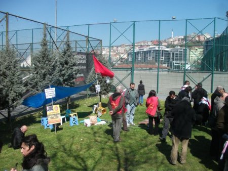 TAYAD üyesi yaklaşık 30 kişilik grup, tutuklu arkadaşlarının serbest bırakılması isteğiyle Sütlüce’de bulunan AK Parti İstanbul İl binası önünde toplandı. Grubun parti binası önüne çadır kurup açlık grevi yapacağı ihbarını alan polis ekipleri parti binası önünde geniş güvenlik önlemi aldı.Polis, grubun çadır kurma ihtimaline karşılık çok sayıda sivil zabıta ekibini de parti binası önünde hazır bekletti.