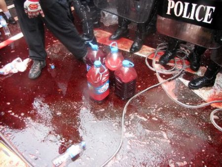 Kırmızılıların bugünkü hedefi başbakanın eviydi. Polisin başbakanın evinin bulunduğun sokağının girişine barikat kurması sonucu 'kırmızılılar sokağa giremedi. Sonrasında yapılan görüşmeler sonucunda polis barikatı bir miktar geriye çekti. Bu arada bütün engellemelere rağmen bazı kırmızılılar evin yakınına kadar gelmeyi başararak çatıya kan torbaları ve başka bazı maddeler fırlattı.