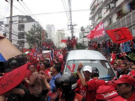 Protestolardan sonra 'kırmızılılar' olaysız bir şekilde üs olarak seçtikleri bölgeye geri döndüler. Ortalığı temizlemesi ise yine sağlık görevlilerine kaldı. Önce biyolojik atık yönetmeliğine göre kanlı suları toparlayıp sonrasında dezenfekte ettiler. Bu arada bazı göstericilerin polislerle hatıra fotoğrafı çekilmesi dikkat çekti. Cihan'a konuşan bir 'kırmızılı' gösterici, Tayland Başbakanı Vejjajiva'nın adaletsizliğe göz yumarak ülkenin ilerlemesini engellediğini iddia etti. Görüşlerini aldığımız bir polis memuru da politik belisizliğin bir an önce ortadan kalkmasının ülkenin yararına olacağına inandığını ifade etti.