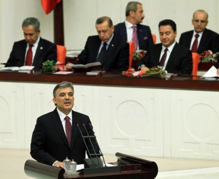 Cumhurbaşkanı Abdullah Gül, Meclis'te yaptığı konuşmada; ''Halkımız, 12 Haziran seçimlerinde yüksek katılım oranıyla siyaset kurumunu onurlandırmıştır'' dedi. ''Siyasetin tüm renk ve eğilimlerinin büyük ölçüde Meclis'te temsil edilmesini sağlamıştır.'' diyen Cumhurbaşkanı, Meclis'deki milletvekillerine yönelik; ''Yüce Meclis'e istisnasız bütün sorunların üzerine cesur bir şekilde gitme gücü vermiştir'' açıklamasını yaptı. Toplantıya Kara Kuvvetleri Komutanı Hayri Kıvrıkoğlu (solda), Genelkurmay Başkanı Necdet Özel (soldan 2.), Deniz Kuvvetleri Komutanı Emin Murat Bilgel ve Jandarma Komutanı Bekir Kalyoncu (sağda) da katıldı. CİHAN