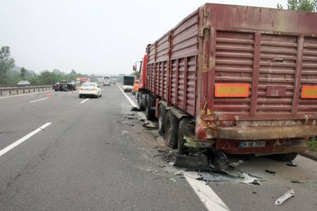 Kilis'ten İstanbul'a giden İsmail Ahmet Polat'ın (20) kullandığı 34 HR 0312 plakalı otomobil, otoyolun Arifiye Köprüsü yakınında Fevzi Tunalı yönetimindeki 34 UN 8028 plakalı TIR'ın 34 HD 7091 plakalı dorsesine, arka sol köşeden çarptı. Çarpmanın şiddetiyle tavanı kağıt gibi yırtılan otomobilin sağ tarafı parçalandı. Hurdaya dönen otomobilde bulunan Mehmet Benzer (35) ve 11 yaşındaki oğlu Şükrü Benzer olay yerinde feci şekilde öldü. Anne Emine Benzer ile 4 yaşındaki oğlu Taha ve sürücü Polat yaralandı.