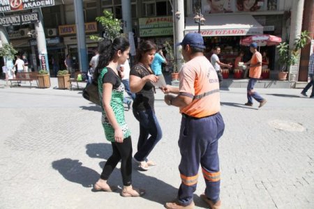 Cumhuriyet Meydanı önünden başlanan broşür dağıtımı kentin en kalabalık ve vatandaşların sık uğrak yerlerinde devam etti. Vatandaşlara broşür dağıtan belediye temizlik görevlileri vatandaşlarla sohbet ederek temizlik konusunda duyarlı olmalarını ve şehri kirletmeyerek kendilerine yardımcı olunmasını istedi.