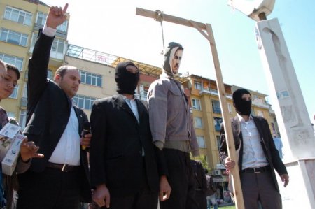Büyük Birlik Partisi (BBP) Kocaeli İl Teşkilatı, PKK terör örgütü elebaşı Abdullah Öcalan’ın. tutuklu bulunduğu İmralı Cezaevi'nden örgütü yönettiğini ve Türkiye’nin başına bela olduğunu gerekçe göstererek idam edilmesini istedi. BBP'liler, temsili olarak Öcalan’ın kuklasını idam etti.