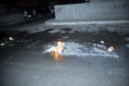 Olay, gece saat 01.00 sıralarında Bornova ilçesi Doğanlar semtinde meydana geldi. Meydanda toplanan bir grup terör örgütü yandaşı, yasa dışı sloganlar atarak yürüyüşe geçti. Yoldaki çöp konteynerlerini deviren grup, olay yerine gelen Çevik Kuvvet ekiplerini taş yağmuruna tuttu. Grup içinden bazı kişiler toplumsal müdahale araçlarına (TOMA) molotof kokteyli fırlattı. Yola düşen molotof kokteylleri küçük çaplı yangınlar çıkardı. Lastik yakarak polisi taşlayan grup, çevik kuvvetin müdahalesi sonucu ara sokaklara dağılarak kaçtı. Bölgede yaşayan vatandaşlar da pazar yerinde toplanarak terör örgütü yandaşlarına tepki gösterdi. Polis, olayla ilgili olarak inceleme başlattı. Konuyla ilgili olarak henüz gözaltına alınan şahıs bulunmadığı öğrenildi.