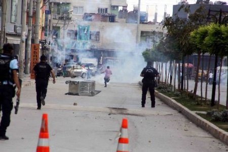 Şevket Sümer Mahallesi'nde korsan gösteri yapan terör örgütü yandaşları polise havai fişek ve taşlarla polise saldırdı. Polis ise korsan göstericilere su sıkıp gaz bombası atarak dağıtmaya çalıştı. Aynı Mahalledeki Hatice Oluğ İlköğretim Okulu'ndaki öğrencilerin çıkış saatinde korsan gösterilerini sürdüren gruplar öğrencilere korku dolu anlar yaşattı. Korkan bazı öğrenciler aileleri tarafından bazıları ise kendi imkânları ile koşarak uzaklaşmaya çalıştı.