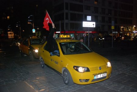 Şehit askerlerimiz için bir dakikalık saygı duruşunda bulunan ticari taksi sürücüleri, İstiklal Marşı'nı okudu. Daha sonra araçlarına binen taksiciler, korna çalarak şehir içinde konvoy halinde tur attı. CİHAN