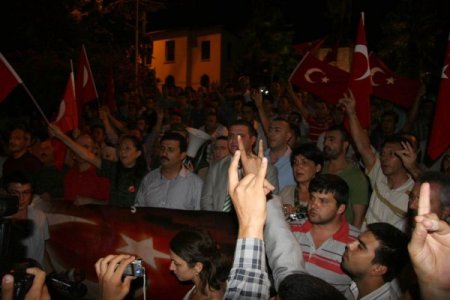 Bursa'da bir grup vatandaş, dün Hakkari’nin Çukurca ilçesinde terör örgütü PKK üyelerince 8 asker ve 1 korucunun şehit edilmesini protesto etti. Çakırhamam’da meşalelerle yürüyüşe geçen grup Atatürk Anıtı önünde İstiklal Marşı okudu.