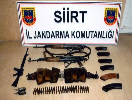 Siirt İl Jandarma Komutanlığı'nca yapılan istihbarat çalışmaları ve operasyon sırasında çıkan çatışmada öldürülen iki teröriste ait çok sayıda silah ve mühimmat ele geçirildi.