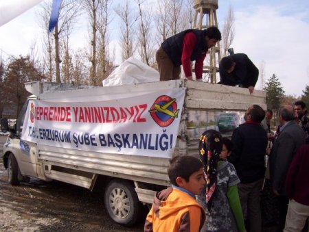 Van depremzedelerinin yaralarını sarmak için devlet ve sivil toplum örgütleri aralıksız çalışıyor. THK Merkez Yönetim Kurulu üyesi ve Erzurum Şube Başkanı Recai Solmaz'ın girişimleriyle Van ve Erciş'teki depremzedelere yardım malzemesi dağıtıldı. 8 kişiden oluşan 4 kişilik yardım ekibinin üç gün süreyle Van ve Erciş'te sürdürdüğü yardım dağıtımının ardından Erzurum'a dönen Solmaz, Kurum binasında basın toplantısı düzenledi. Solmaz, depremzede vatandaşlara yardım elini uzattıklarını söyledi. Devletin ve sivil toplum örgütlerinin depremzede vatandaşların yardımına koştuğunu ve bunun da milli birlik duygusunu pekiştirdiğini dile getiren Solmaz, "THK Erzurum Şubesi olarak depremzede kardeşlerimizin yardımına koştuk. Şahsi ilişkilerimizle topladığımız 200 bin TL değerindeki çocuk bezi, temizlik, gıda malzemelerini depremzede kardeşlerimize gönüllü arkadaş ve üyelerimizle dağıttık. Erzurumlular olarak Van'daki kardeşlerimizin acı ve sıkıntılarına ortak olduk." diye konuştu. CİHAN