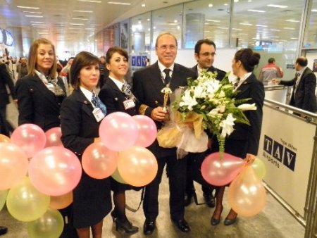 Stutgart’tan İstanbul’a saat 14.45’de son uçuşunu gerçekleştiren emektar kaptan, mesai arkadaşları tarafından çiçek ve balonlarla karşılandı. Arkadaşları, Osman Terzioğlu’na emeklilik hatırası olarak, üzerinde ‘yılın en iyi büyükbabası’ yazan temsili oskar ödülü hediye etti.