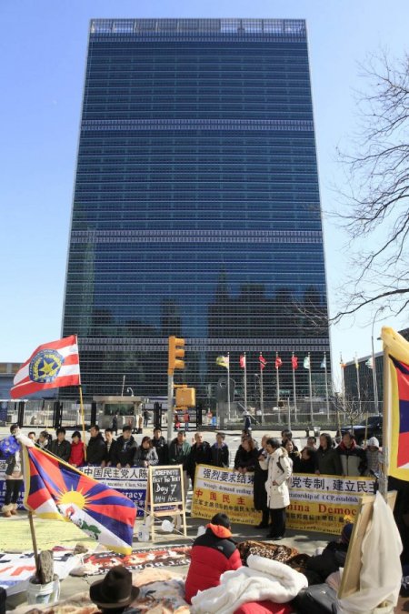 Uluslararası toplumun dikkatini Tibet’teki Çin baskısına çekebilmek için 11 gündür dünya sorunlarına çözüm amacıyla kurulan BM’nin önünde açlık eylemi yapan 3 Tibet vatandaşı, zaman zaman çevreden geçenlerin dikkatine mazhar oluyor.