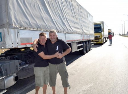 Ramazan Bayramı’nı ailelerinden kilometrelerce uzakta geçiren TIR sürücüleri, Kapıkule yolunda birbirleriyle bayramlaştı.