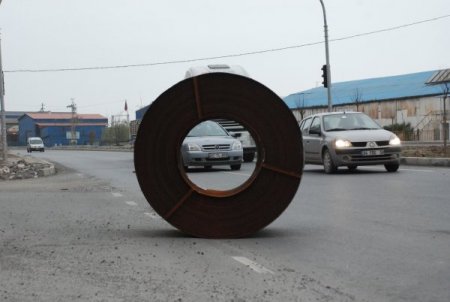 Zonguldak’ın Ereğli ilçesinde yolda seyreden tır üzerindeki rulo sac düştü. Rulonun olay yerinden araçların geçmediği anda düşmesi olası bir faciayı önledi.