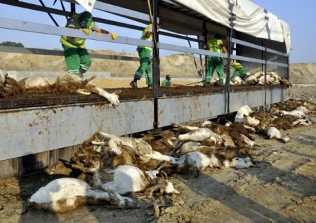 Aydın’dan Sakarya’ya nakledilirken Bandırma’da gemiye yerleştirilen 140 küçükbaş hayvan, aşırı sıcak ve havasızlık sebebiyle TIR'ın içinde telef oldu. Zabıtanın rutin uygulaması sonrası ele geçirilen hayvanlar, toprağa gömülerek imha edildi.
