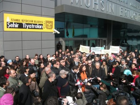 İstanbul Büyükşehir Belediyesi Şehir Tiyatroları Sanatçıları Derneği (İŞTİSAN) üyesi bir grup, tiyatro sanatçılarına baskı ve saldırılar olduğu iddiasıyla Harbiye Muhsin Ertuğrul Sahnesi önünde protesto gösterisi düzenledi.