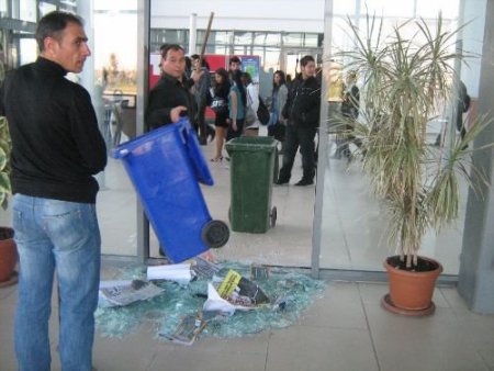 Grup. daha sonra kampüsün içinde bulunan Yabancı Diller Yüksekokulu kantininin kapısını masalarla kapattı. Kantinin içerisine kimsenin girmesine izin vermeyen TKP'lileri, polis, kapıyı açmaları ve dağılmaları konusunda uyardı. Ancak polisin uyarılarını dikkate almayan TKP'liler, kantinin camlarını ve kantin içinde bulunan vazo ve masaları dahi kırarak sağa sola saldırmaya başladı. Saldırı esnasında 10 öğrenciyi yaralayan ve bir kantin görevlisini tekme tokat dövüp burnunu kıran TKP'lilere polis müdahale etmek zorunda kaldı.