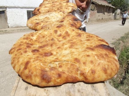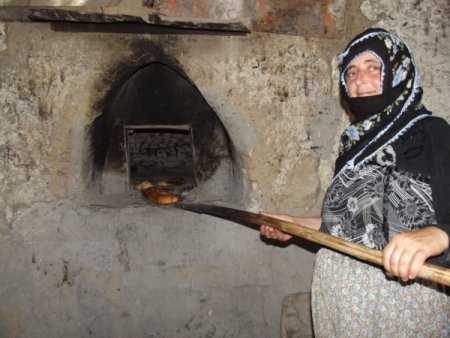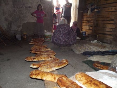 Köy fırınında sıcak odun ateşinde pişen cevizli ekmekler sırayla üretiliyor. Pişen ekmekler ise uzun bir tahtaya dizilerek omuzda eve götürülüyor. CİHAN