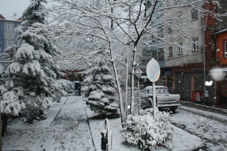 Trabzon’un Tonya ilçesinde bu akşam saatlerinde etkili olan kar yağışı kısa sürede ilçe merkezini beyaza bürüdü.