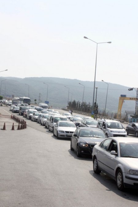 Yalova Topçular İskelesi'nde, ek arabalı vapur seferlerine rağmen uzun araç kuyrukları oluştu. 9 günlük Ramazan Bayramı tatilini İstanbul dışında geçirenler, dönüş için Yalova-Topçular arasında seferler yapan arabalı vapurları tercih etti. İDO yetkilileri Yalova-Eskihisar arasından sefer yapan arabalı vapurların sayısının 13’den 15’e çıkarıldığını bildirdi. Yetkililer bugün toplam 12 bin aracın geçiş yapmasını beklediklerini söyledi. Bayram tatili süresince şu ana kadar 50 bin aracın ise Topçular İskelesi’ni kullanarak İstanbul’a geçtiği öğrenildi.