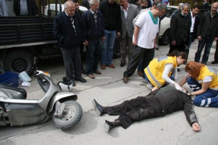 Edinilen bilgiye göre, ilaç kuryeliği yapan Ferdi A.’nın kullandığı 16 P 1641 plakalı motosiklet, tramvay inşaatı sebebiyle trafiğe kapalı olan merkez Osmangazi ilçesi Kayhan Mahallesi eski tekel binası önünde yolun karşısına geçen Bahattin Canpolat’a çarptı. Çarpmanın etkisiyle Bahattin Canpolat başını yere vurarak yaralandı. Vatandaşlar, durumu sağlık görevlilerine bildirdi. Yerde hareketsiz yatan yaralı Canpolat’a ise su ikram eden vatandaşlar, kazanın şaşkınlığını yaşadı. Trafiğe kapalı alanda meydana gelen kazada yaralanan Ferdi A. ve Bahattin Canpolat 112 Acil Servis Ambulansı tarafından hastaneye kaldırıldı. Kazayla ilgili başlatılan soruşturma sürüyor.